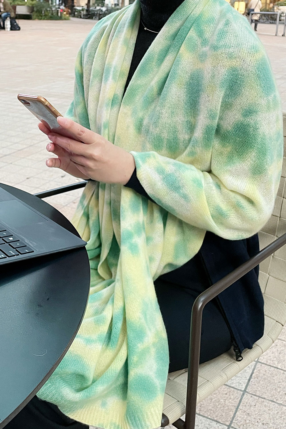 カシミヤ100%ニット×タイダイ染めの他にはないストール